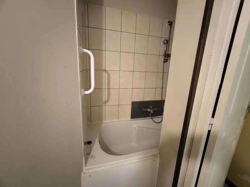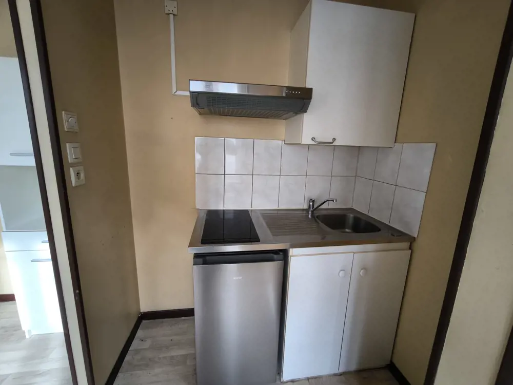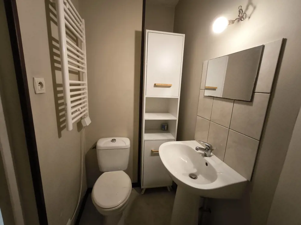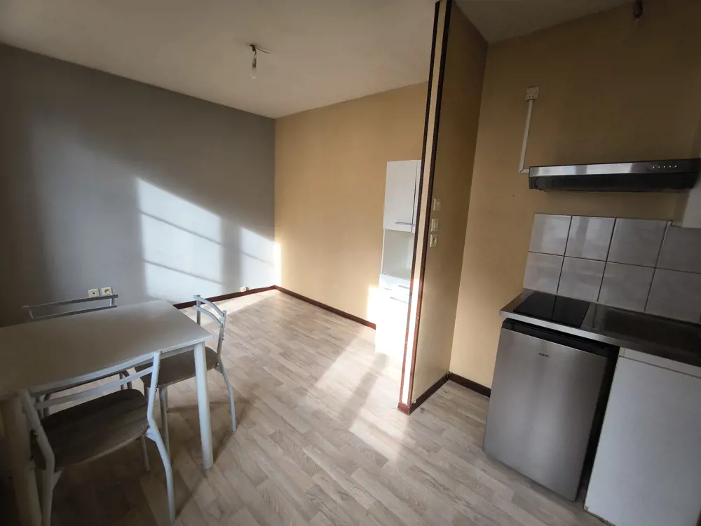 Appartement type 2 meublé de 31.67m² composé une pièce de vie avec cuisine équipée et meublé (plaque de cuisson, frigo, micro-onde), une chambre, une salle de bain avec un WC.