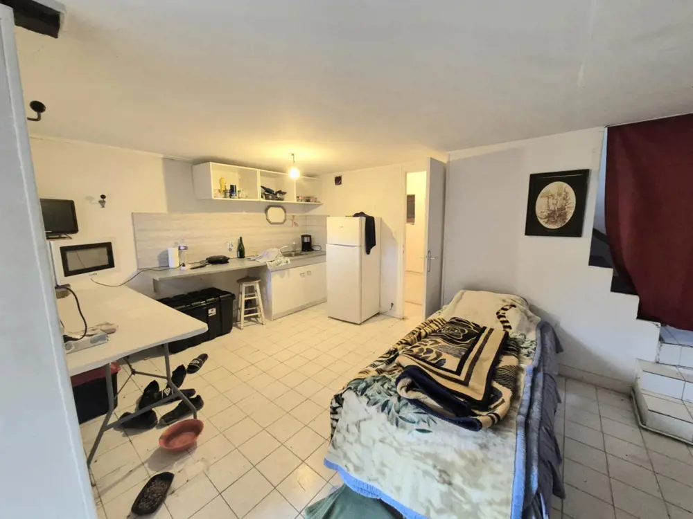 1ere partie : une petite maison comprenant au rez-de-chaussée une entrée, un salon/cuisine et une salle d'eau avec WC. A l'étage une chambre.