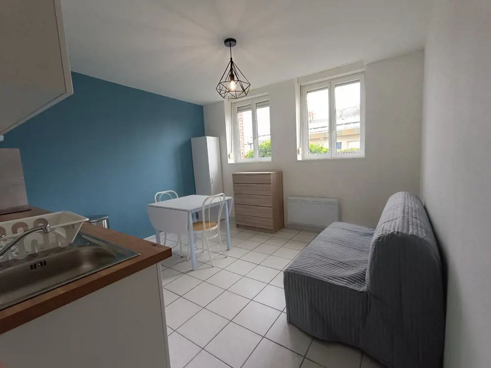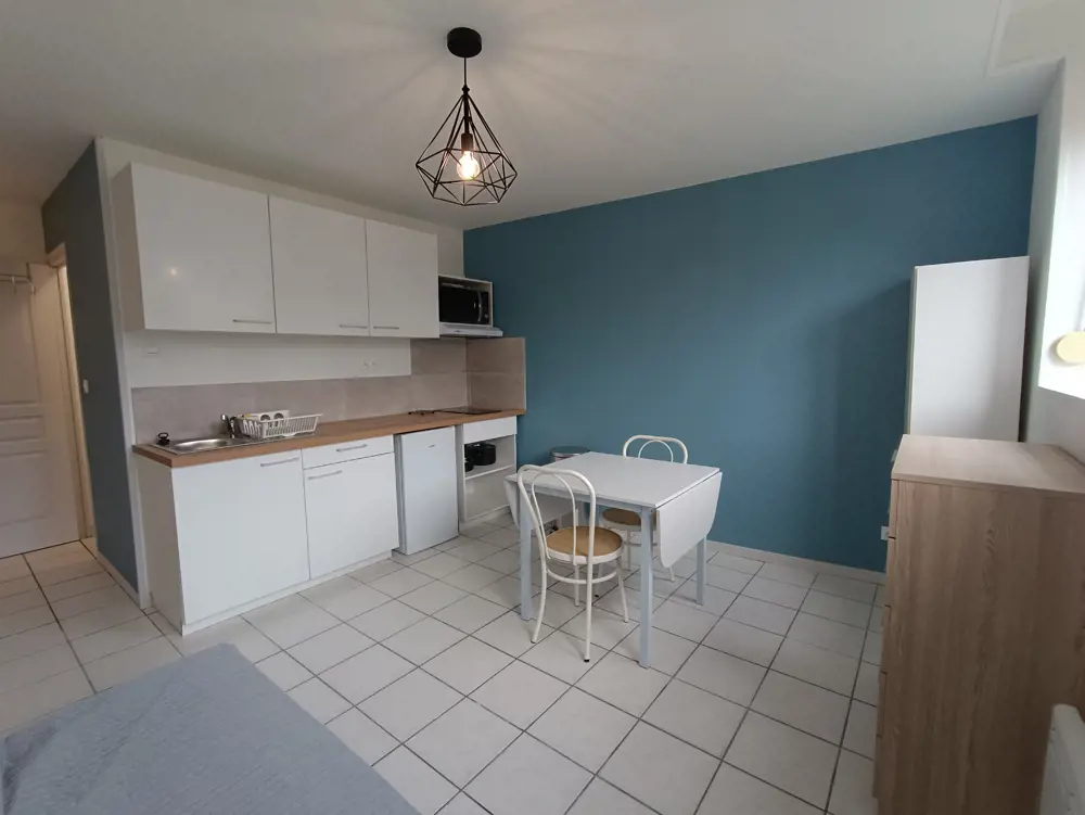 Studio meublé de 21.80 m² composé une pièce avec cuisine équipée et meublé, une salle d'eau et un WC.