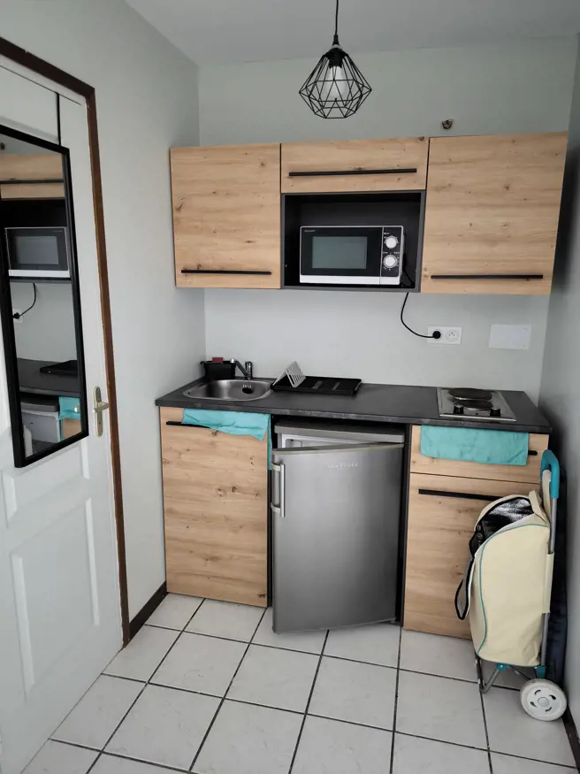 Studio meublé de 22m² composé une pièce de vie avec cuisine équipée et meublé ( plaque de cuisson, frigo, micro-onde),